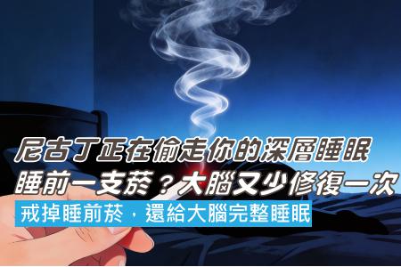 撰文/江永慶 睡眠技師 夜深人靜,你或許以為白天指縫間那根燃盡的香菸,早已成為過去。但醫學證據告訴我們...